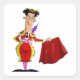 Um toureiro no anel com o touro. O matador tem uma capa vermelha. Esta design parece realmente eficaz nestes adesivos