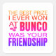 Texto do estilo tipográfico moderno para o seu melhor amigo Bunco. O sentimento Bunco diz: "O melhor prêmio que ganhei em Bunco foi a sua amizade. Coloridos e feitos apenas para os jogadores Bunco.