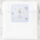 Adesivo Quadrado Bunny Rabbit Blue Gingham Baby Shower Thank You