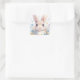 Adesivo Quadrado Bunny Rabbit with Blue Eyes and Spring Wildflowers