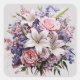 Adesivo Quadrado Buquê de Noiva Branco Rosa Roxo