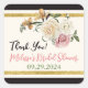 Esses adesivos de agradecimento elegantes e modernos apresentam um colorido buquê floral no topo do adesivo em um fundo preto. O buquê tem rosas encantadoras em creme, marfim e rosa, com lírios peruanos laranja e folhagens verdes. Abaixo do buquê, duas faixas de ouro simulado percorrem a largura do adesivo na parte superior e inferior com um fundo marfim onde suas informações em rosa coral, preto e verde musgo são impressas. Envie um e-mail para niteowlstudio@gmail.com se precisar de itens correspondentes ou ajuda para personalizar o texto.