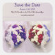 Duas noivas fazem buquês de casamento correspondentes, cada uma se dedica a uma vida como a amável esposa da outra, neste adesivo Salvar a Data. Alerte sua família e amigos que eles podem limpar seu calendário para seu grande dia.