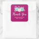 Obrigado personalizado que você usa adesivos de sua empresa com seu site e número de telefone. Projetado com fundo magenta. Um buquê de flor de aquarela de cor pastel no topo. As flores, folhas e galhos são cor-de-rosa pastel e verdes. Criado com tinta aquosa e digitalizada. Obrigado. Está escrito em uma fonte de tendência. Fresco e verão.