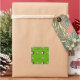 Coco castanho com texto sobre design de padrão de fundo verde.