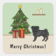 Adesivo Quadrado Cachorro De Cartografia De Pug Negro Com Árvore De