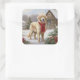 Adesivo Quadrado Cachorro de ouro no Natal da Neve