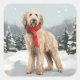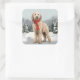 Adesivo Quadrado Cachorro Dourado no Natal da Neve