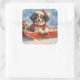 Adesivo Quadrado Cachorro Japonês com Sledge Deixe-o nevar no Natal