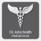 Adesivo Quadrado Caduceu Médico Branco Limpo Detalado Antracito