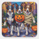 Adesivo Quadrado Cães Collie de Borda Trick-or-Tratando no Hallowee