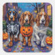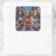 Adesivo Quadrado Cães de Cão Basset Trick-or-Tratating no Halloween