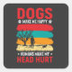 O design do adesivo de Cães e Humanos apresenta uma silhueta preta de um homem e cão com texto que diz Cães fazem-me felizes Humanos fazem-me doer a cabeça! Este é um presente excelente para o amante do cachorro que gosta mais de cachorros do que de pessoas!