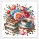 Adesivo Quadrado Café, Livros e Flores Envelope Selo