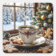 Adesivo Quadrado Café quente e biscoitos de pão quente Natal