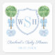 Este clássico design de adesivo de favor / agradecimento apresenta um simples brasão de monograma de 3 letras ladeado de cada lado por uma bola de topiária pintada à mão em um vaso de gengibre adornado com laço azul desfiado. Elementos de aquarela foram pintados por mim em papel 100% algodão e digitalizados. A forma do brasão é de outro artista. Este design funcionaria igualmente bem para um chá de bebê (onde o nome do bebê foi anunciado) ou para um chá de casamento / chá de casal.