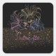 pegatina cuadrada que pega contigo especial para ocasionações y celebraciones hecha con textura negra y flores de variados con purina multicolor Puedes usarla para un envío especial.