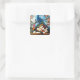 O gato Calico brincando com um dragão chinês vermelho em frente a uma janela de vidro colorido de pavão.