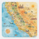 Adesivo Quadrado California Illustrated Watercolor Map Art