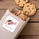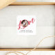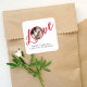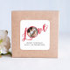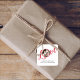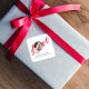 Esta design apresenta um adesivo de natal com script de caligrafia, com uma letra de tipografia de na moda, eterno clássico de na moda-Trendy, minimalista festivo, tradicional, vermelho e branco de feriado festivo, letras de palavras de amor únicas e criativas, adesivo de presente personalizado de Natal, modelo de foto da família, elegância simplista criativa e elegante, etiqueta de presente de Natal