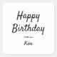 Adesivo Quadrado caligrafia mínima simples, feliz aniversário perso