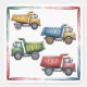 Adesivo Quadrado Caminhões Coloridos 4º. Festa de aniversário