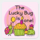 O inseto da sorte é um! T-shirts, primeiros aniversarios de Cupcake de sorte, fatos-chave, cartões, autocolantes, botões de aniversário, ímanes, sacos de tote e outros equipamentos de primeiro aniversário com cupcakes de aniversário coloridos, uma vela de aniversário, um balão e joias de sorte!