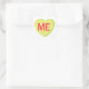 A lime green candy heart that says, "ME."