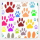 Imagens de estampas de pata de cachorro por toda parte. Design de estilo de desenho colorido.
