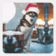 Adesivo Quadrado Cão Siberiano Husky vestindo chapéu Santa