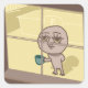 Um adesivo engraçado de uma cara com uma caneca olhando pela janela de forma impassiva.