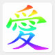 O símbolo chinês do amor num brilhante arco-íris de cores.