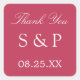 Carmine Magenta Wedding Favor Obrigado Sticker, personalize com as iniciais do casal e a data do casamento, usando a modelo de personalização online antes de fazer o pedido. Um adesivo de na moda com elegante texto branco em uma bela sombra de magenta carmim.