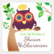 Chef de coruja "da minha cozinha", "da cozinha de" etiquetas de presentes ou etiquetas de comida ou de cozedura para padeiro, padaria, cozinheiro ou pastelaria, classes de cozinhar, chef pessoal, restauração ou restauração, ou outras comidas de gourmet ou culinária. Coruja veste o chapéu de um chef e se senta em uma árvore com galho de colher de madeira.
