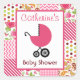 Adesivo Quadrado Carruagem rosa chá de fraldas e colchete giro