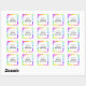 Um adesivo em folha de papel com algumas listras arco-íris de cor brilhante com um escrivor branco grande na frente.