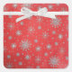 Adesivo Quadrado Cartão de Natal de Flocos de Neve Prata Vermelha E