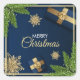Adesivo Quadrado Cartão de Natal Flocos de Neve Dourados, Feliz Nat