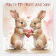 Um doce cartão de aquarela com dois belos coelhos segurando um coração. Um presente maravilhoso para o seu amado no Dia do Namorados ou em qualquer ocasião especial.