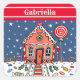 Uma ilustração colorida de uma casa festiva de pão de gengibre. O exterior da casa é decorado com duas canetas doces e tem uma grande árvore pirulito no jardim. O chão está coberto de neve brilhante e branca com açúcar em gelo, e está coberto com doces.