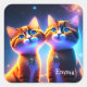 Adesivo Quadrado Casal de gato bonito debaixo do céu estrelado -