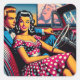 casal do estilo da era de 1950 em uma data romântica dentro de seu carro convertível em um cinema drive-in. Estilo de banda desenhada, estilo cartoon pop art ai.