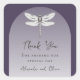 Seal, obrigado, cartas com este casamento de Dragonfly Roxo-Escuro moderno. Obrigado Sticker. Sticker design apresenta uma libélula simples e elegante com uma escrita elegante e uma tipografia moderna para os nomes da noiva e do noivo e a mensagem do obrigado. Perfeito para o casal ter um casamento com o tema da libélula. Material adicional e material disponível com esta design.
