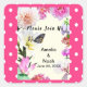 Use este adesivo para o verso do envelope do convite. O adesivo de casamento é rosa brilhante com bolinhas brancas no fundo. Flores e borboletas em aquarela com o nome do casal e a data do autocolante. Isso é completamente personalizável. Adicione suas informações de casamento ou outro evento especial. Os produtos correspondentes estão disponíveis ou transferem este design para outros produtos.