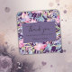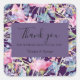 Este obrigado de casamento que você cola quadrado vem em diferentes tamanhos, formas e papéis. É personalizável com seus nomes e/ou monogramas. Mostra uma mistura harmoniosa de flores silvestres coloridas florais e verde-coloração aquosa. A camada mínima de violeta, lilás é para sua personalização. O fundo tem um fundo roxo profundo e é alterável. Hobinishop