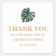 Adicione um toque de paraíso ao seu dia especial com os nossos palmeiros palmeiros tropicais. Estes adesivos elegantes, em forma quadrada apresentam folhas de palma verdes vibrantes dispostas em um design chic, inspirado no tropical. Perfeito para casamentos de destino, comemorações de praia, ou núpcias de verão, eles são uma adição versátil e na moda à vossa decoração de casamento. Um belo motif tropical com folha monstera exuberante ideal para criar uma vibe serena e exótica. Há a opção de adicionar iniciais e data de casamento. Estes autocolantes não são apenas práticos, mas também uma bela guarnição que os vossos hóspedes irão adorar. Quer você esteja planejando uma cerimônia íntima à beira-mar ou uma grande celebração tropical, esses adesivos ajudarão a juntar seu tema sem esforço.