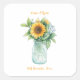 Terraço Floral Russo Sunflower Mason Jar Wedding Envelope Seal Sticker . Adicione um toque encantador à sua papelaria de casamento com este adesivo de selo de ferro de girassol. Apresentando um buquê de girassol pintado manualmente em um pote de mason azul-safra, este design traz uma sensação quente e rural aos seus convites, salve as datas ou obrigado cartas. Perfeito para casamentos rústicos, de boho, de fazenda ou de girassol. Personalize com seus nomes e data de casamento para torná-lo exclusivamente seu. Ideal para o outono, verão ou comemorações de casamento ao ar livre. Fique à vontade para entrar em contato comigo para obter mais informações sobre a personalização em mypaperlove2021@gmail.com