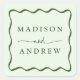 Coloque os envelopes de casamento e os favores em estilo com os adesivos de Mola Verde Moderno! O design apresenta os nomes dos casais em letras verdes e negrito cercadas por um quadro de onda verde em contraste com um fundo verde-claro. Os adesivos de casamento retrô foram projetados para coordenar com nossa coleção de casamento do Modern Wavy Frame.