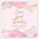 Adesivo Quadrado Casamento de Obrigados e Amor com Agitação Rosa e