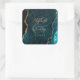 Adesivo Quadrado Casamento de Script Agate Dourado Azul Teal